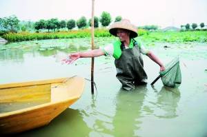 “幸運(yùn)的游客可以在游船時(shí)看到漁民捉魚(yú)的情景。”蓮花水鄉(xiāng)的工作人員告訴記者,現(xiàn)在景區(qū)共有10條疍家漁船,撐船者都是當(dāng)?shù)貪O民,閑暇時(shí)他們會(huì)在湖中捉魚(yú),頗有江南魚(yú)米鄉(xiāng)之感。