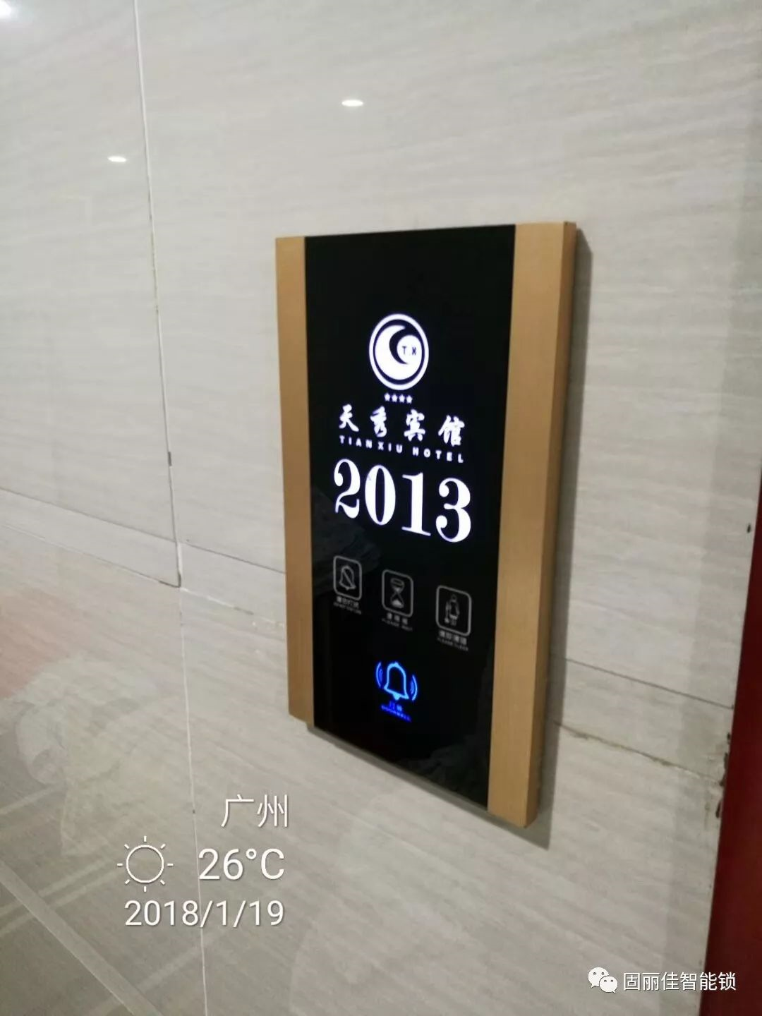 祝賀廣州天秀賓館智能電子門鎖、智能門牌觸摸開關(guān)調(diào)試安裝完成