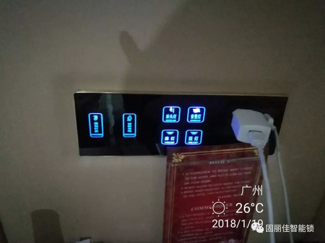 采用固麗佳智能門牌觸摸開關(guān)——LED背光觸摸式燈位指示一目了然。方便夜間識(shí)別,提高酒店高效、便捷的服務(wù)質(zhì)量,提升了顧客滿意度!