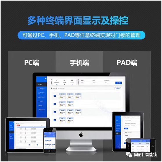 這樣一家高端智能公寓不僅僅在要服務(wù)上有特色,更有有專業(yè)化、規(guī)范化、個(gè)性化、智能化的管理。固麗佳LORA無線聯(lián)網(wǎng)鎖可支持手機(jī)、PC、PAD多端界面同步顯示及操控,而且功耗低、穩(wěn)定性強(qiáng)、無線通訊距離遠(yuǎn)。門鎖可同時(shí)生效80組在線密碼、離線密碼、在線卡片及加密卡片,同時(shí)支持微信二維碼掃碼開鎖,多功能智能網(wǎng)關(guān),搭配聯(lián)網(wǎng)電表、水表使用,門鎖狀態(tài)實(shí)時(shí)在線,網(wǎng)絡(luò)信號(hào)、電池電量、異常報(bào)警實(shí)時(shí)顯示,海量房源實(shí)時(shí)管理。給房東帶來了巨大的便利,房東無需到現(xiàn)場進(jìn)行管理,無需當(dāng)面交易,可在線實(shí)現(xiàn)催繳房租,報(bào)修維護(hù)等操作,可實(shí)現(xiàn)多房源集中管理。