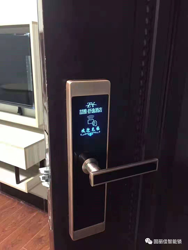 廣州喆雅.舒逸酒店此次與我們固麗科技合作選擇安裝了固麗佳GLJ-9899FH的新款智能酒店門鎖以及配套的電子門顯。此款酒店鎖是固麗佳專利產(chǎn)品,外觀設(shè)計新穎,采用堅實防暴的鋅合金材質(zhì),同時刷卡感應(yīng)區(qū)顯示面板可以個性化定制LED顯示酒店名稱和品牌LOGO,彰顯了酒店特色!其豪華的氣質(zhì)更是奢華與尊貴的象征,是各大星級酒店賓館首選,固麗佳智能酒店鎖卓越的質(zhì)量品質(zhì)與完善的售后服務(wù)更是受到各大酒店青睞的原因之一!