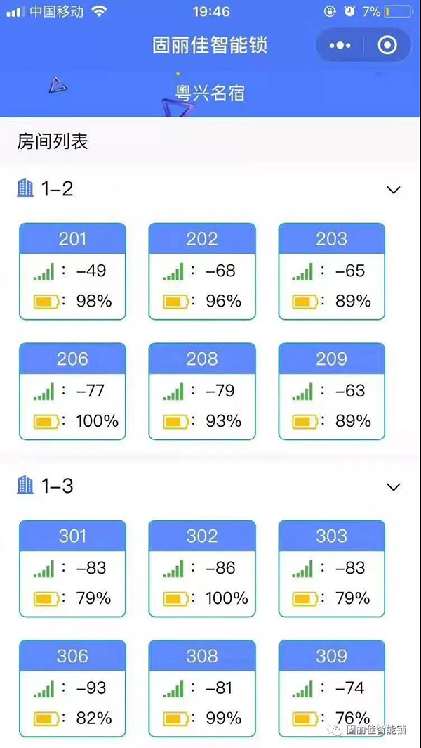 廣州上下九十八甫路粵心民宿精品酒店公寓此次選擇安裝了固麗佳GLJ-9899LoRa無線聯(lián)網(wǎng)密碼鎖。此款智能鎖外觀高端大氣,是固麗佳研發(fā)生產(chǎn)的專利產(chǎn)品。固麗佳LORA無線聯(lián)網(wǎng)鎖可實現(xiàn)密碼開鎖信息實時聯(lián)網(wǎng)監(jiān)控、手機開鎖,密碼開鎖,二維碼開鎖,不需布線就可以實現(xiàn)遠程開鎖、遠程鎖定鎖、遠程送電斷電,防飛房,防欠租,還可電腦端手機端同步在線!功能強大,是精品特色酒店,高端公寓首選之良器!