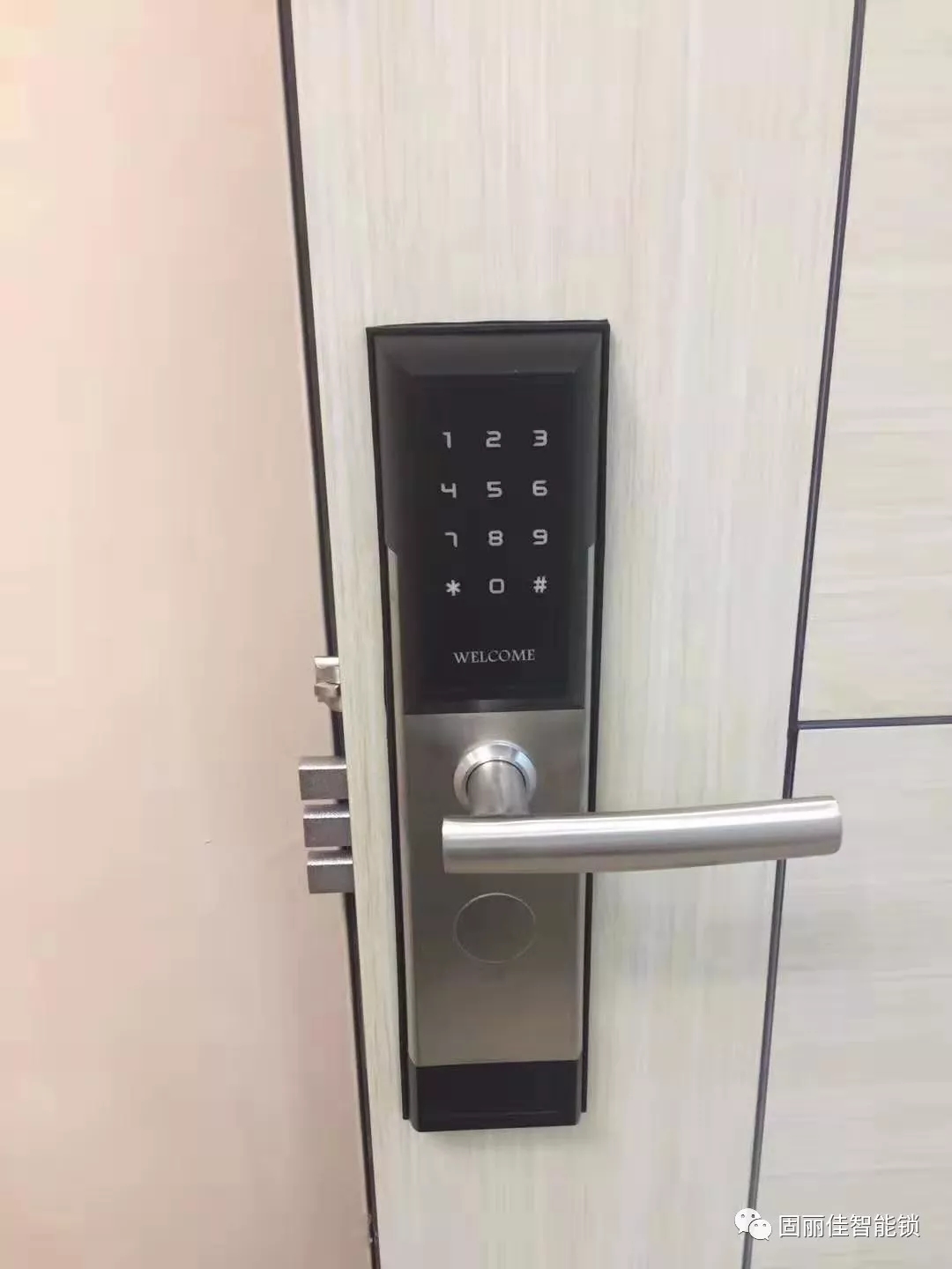 天河梵洛居公寓客房門鎖選擇安裝了固麗佳GLJ-9814不銹鋼LoRa無線聯(lián)網(wǎng)公寓防盜門鎖調試完成,此款標配6068電子鎖體防盜門不用改孔。固麗佳LORA無線聯(lián)網(wǎng)密碼開鎖信息實時聯(lián)網(wǎng)監(jiān)控、可手機開鎖,密碼開鎖,二維碼開鎖,不需布線可實現(xiàn)遠程開鎖,斷鎖,斷電,防飛房,防欠租,可電腦端手機端同步在線,隨時隨地管理!